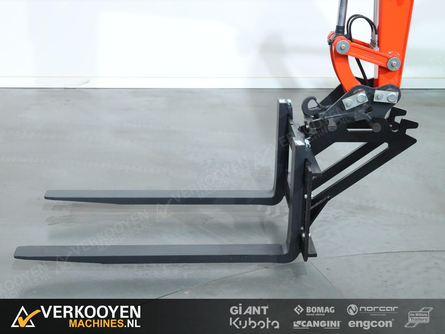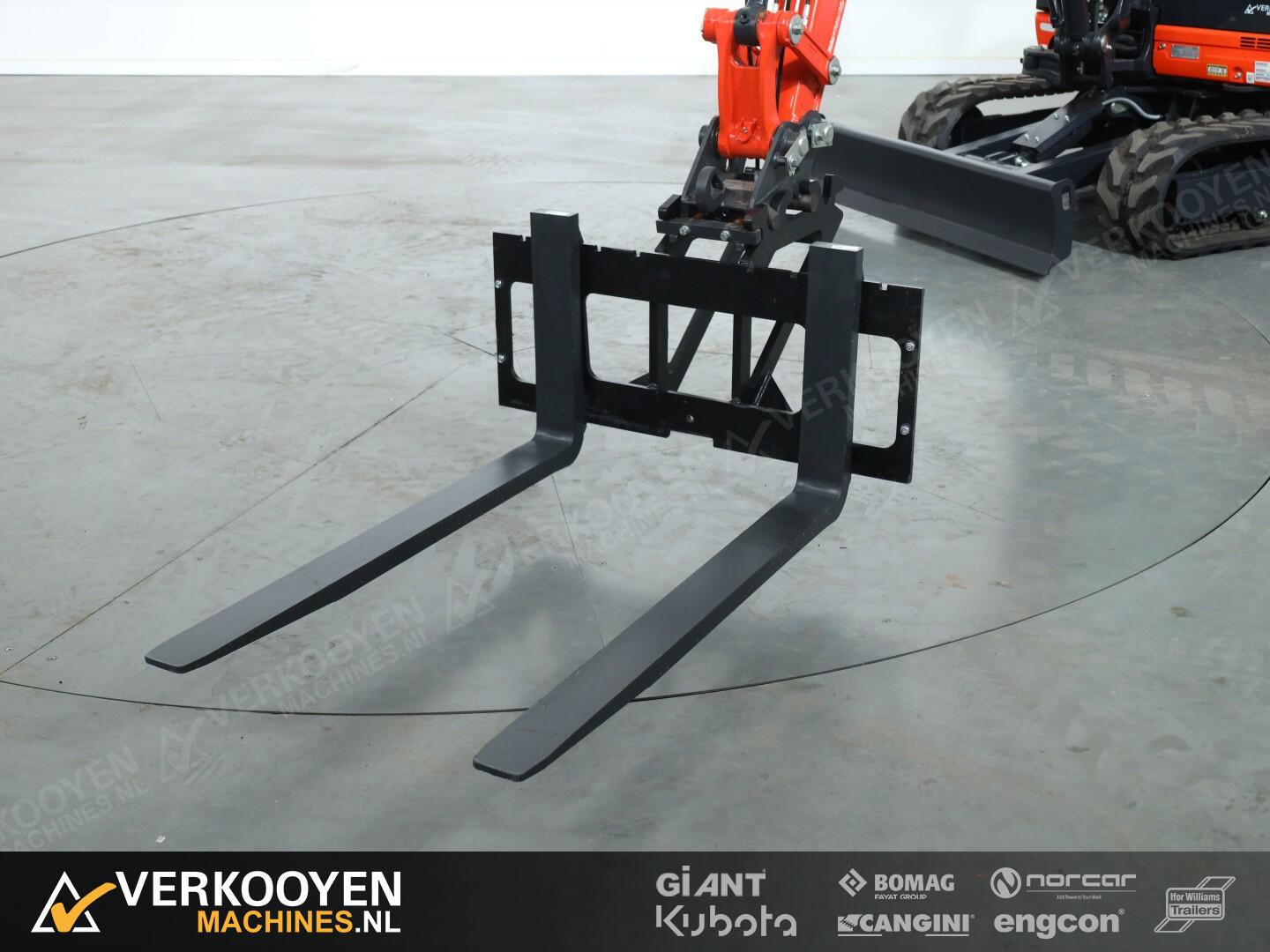 Dit nieuw palletframe is een complete set, inclusief palletvorken van 120cm. Deze palletframe set staat bekend om zijn hoogwaardige kwaliteit en duurzaamheid. De palletframe is eenvoudig te bevestigen aan je minigraver met CW05 aansluiting maakt je werk een stuk efficiënter dankzij de dubbele aanspan, ook wel QT05 genoemd.