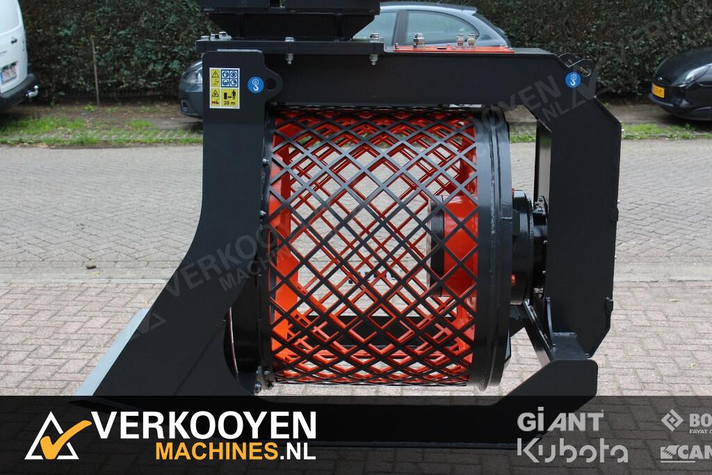De nieuwe dubbele roterende trommel in HB400, maakt real-time selectie van de zeefgrootte van 25 tot 65 mm mogelijk, via het hydraulisch geregelde zeefgroottevariatiesysteem.