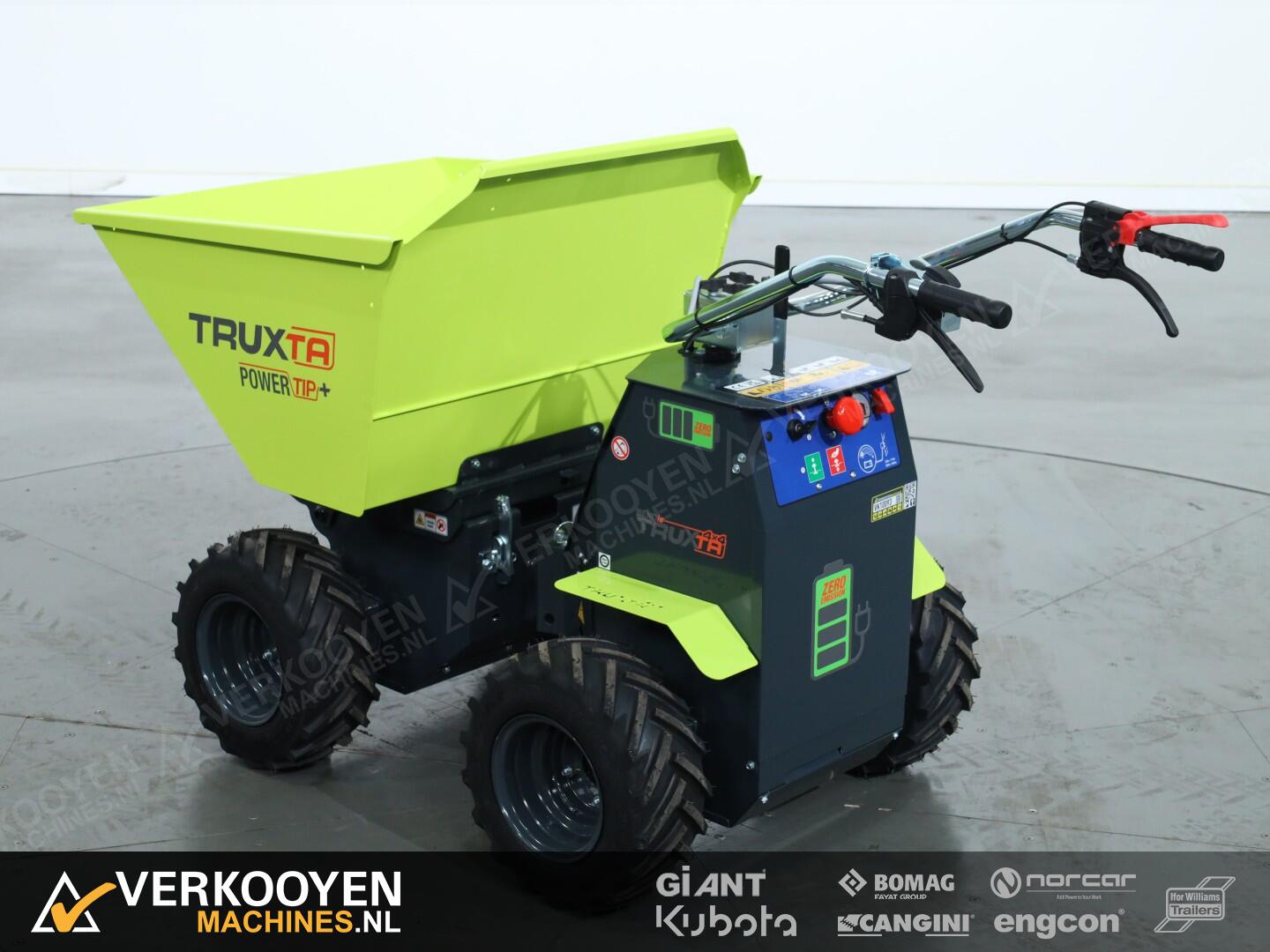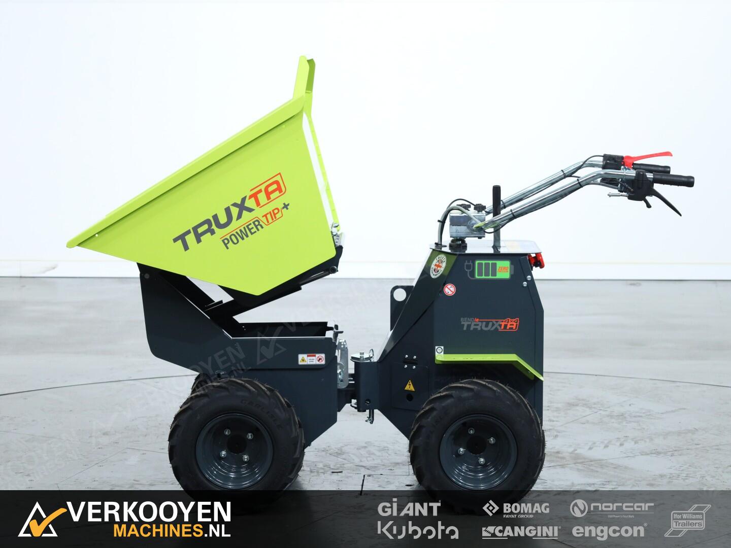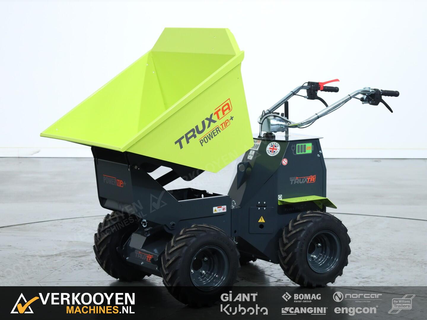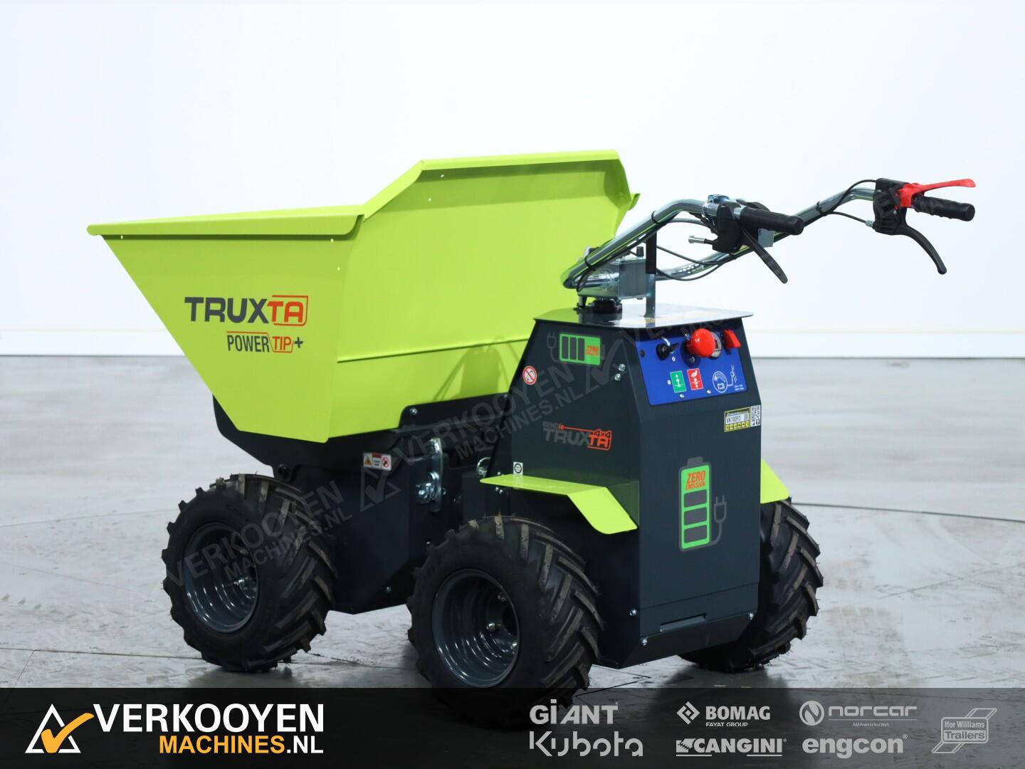 De Truxta 400 - 500 mini-dumper is nu verkrijgbaar met een elektrisch aangedreven kipbak, oftewel de Powertip!