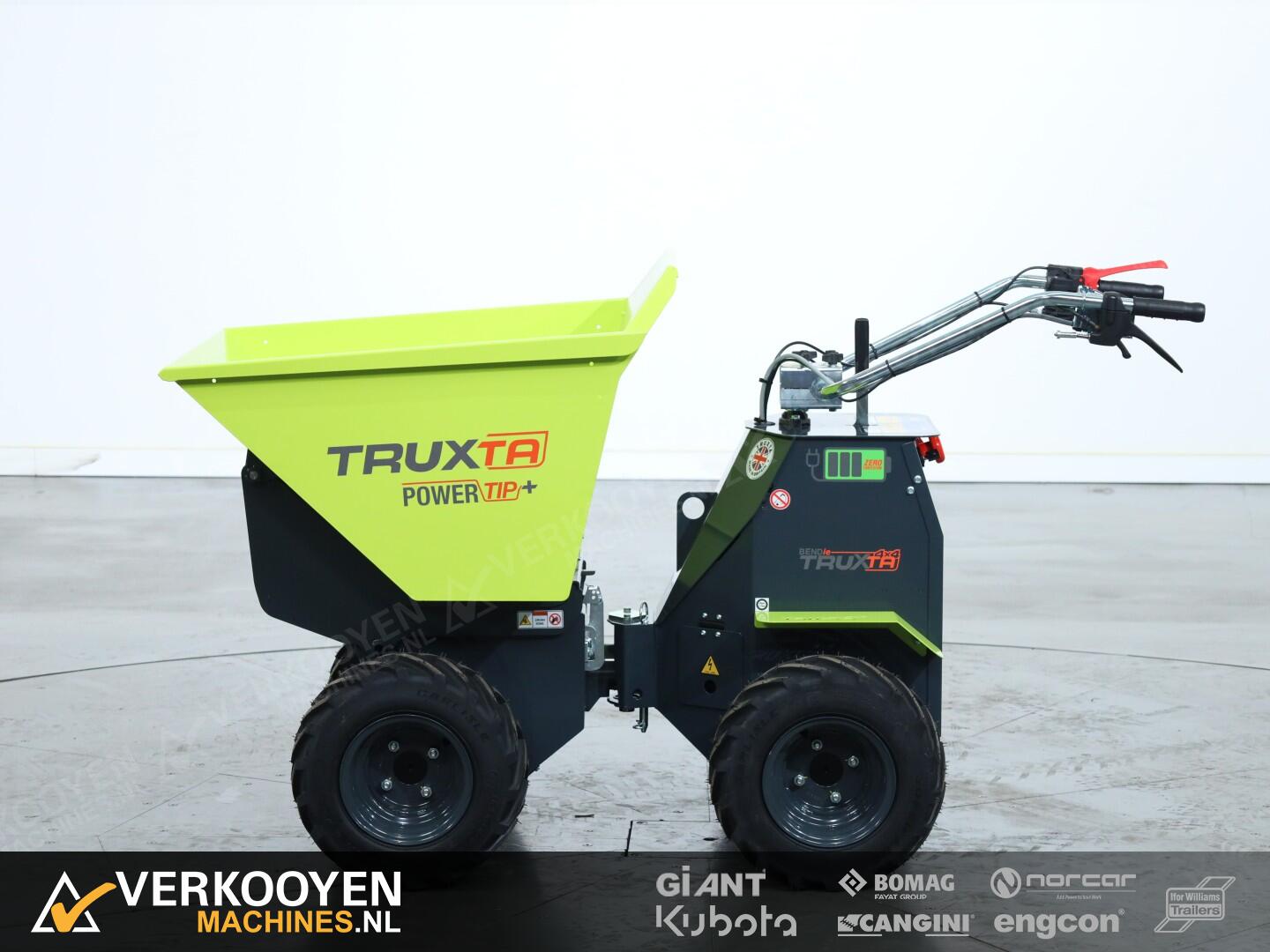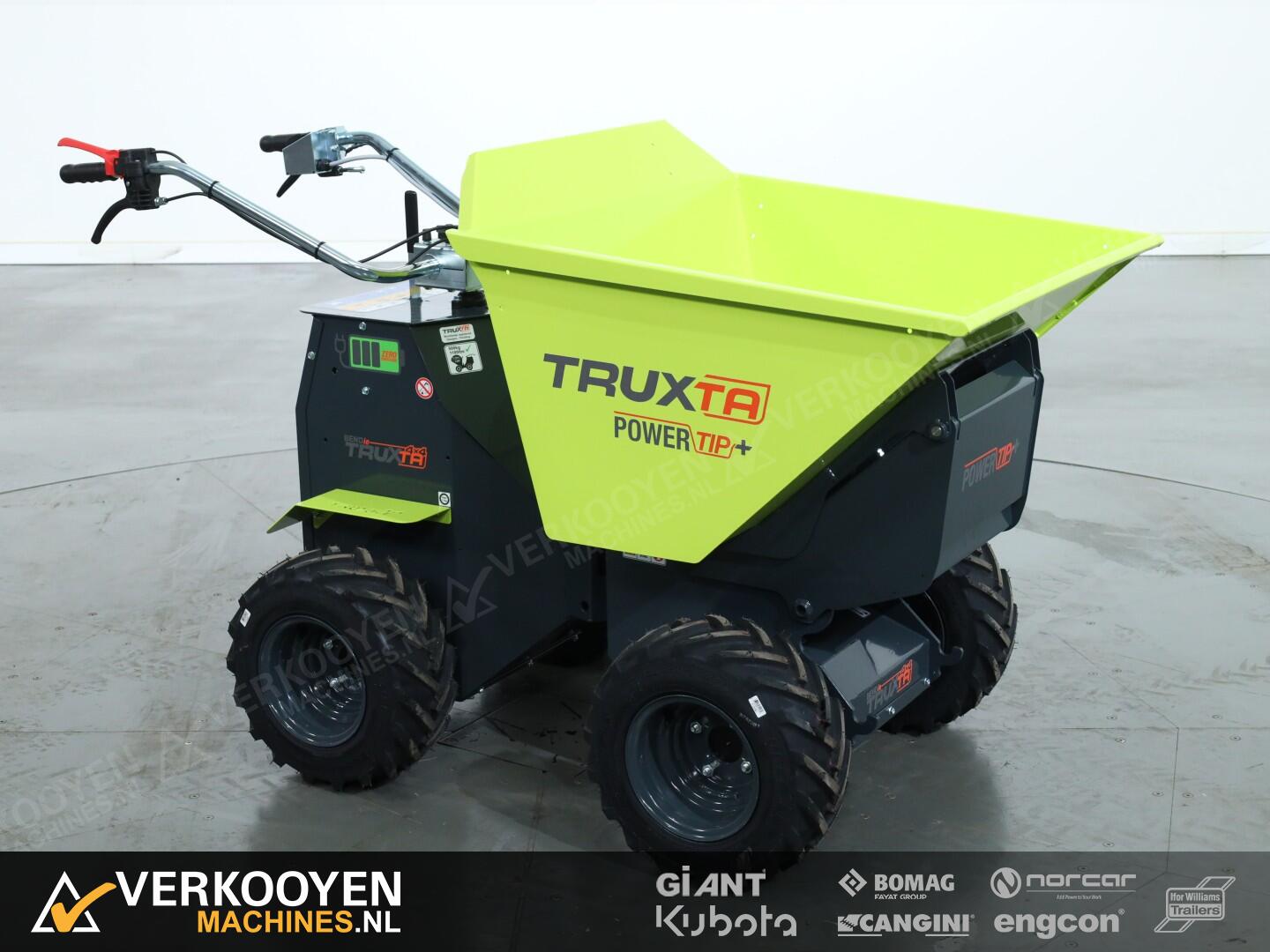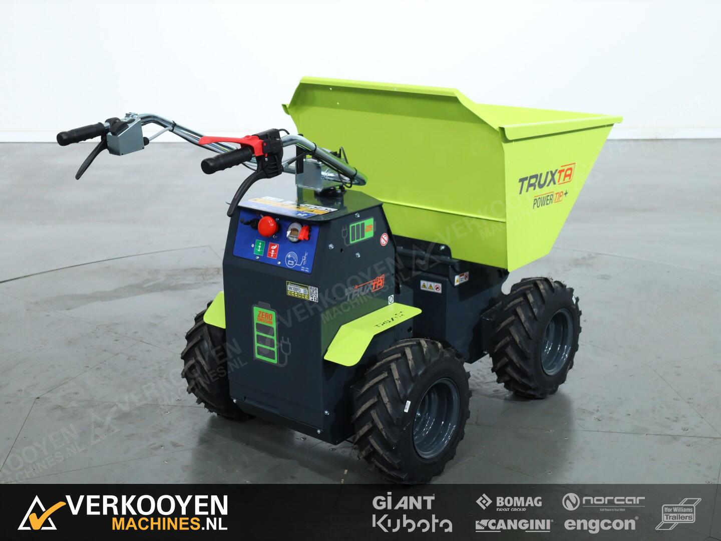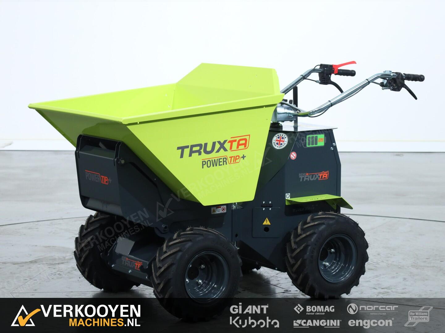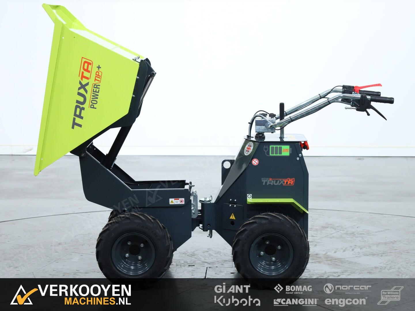 De Truxta 400 - 500 mini-dumper is nu verkrijgbaar met een elektrisch aangedreven kipbak, oftewel de Powertip!