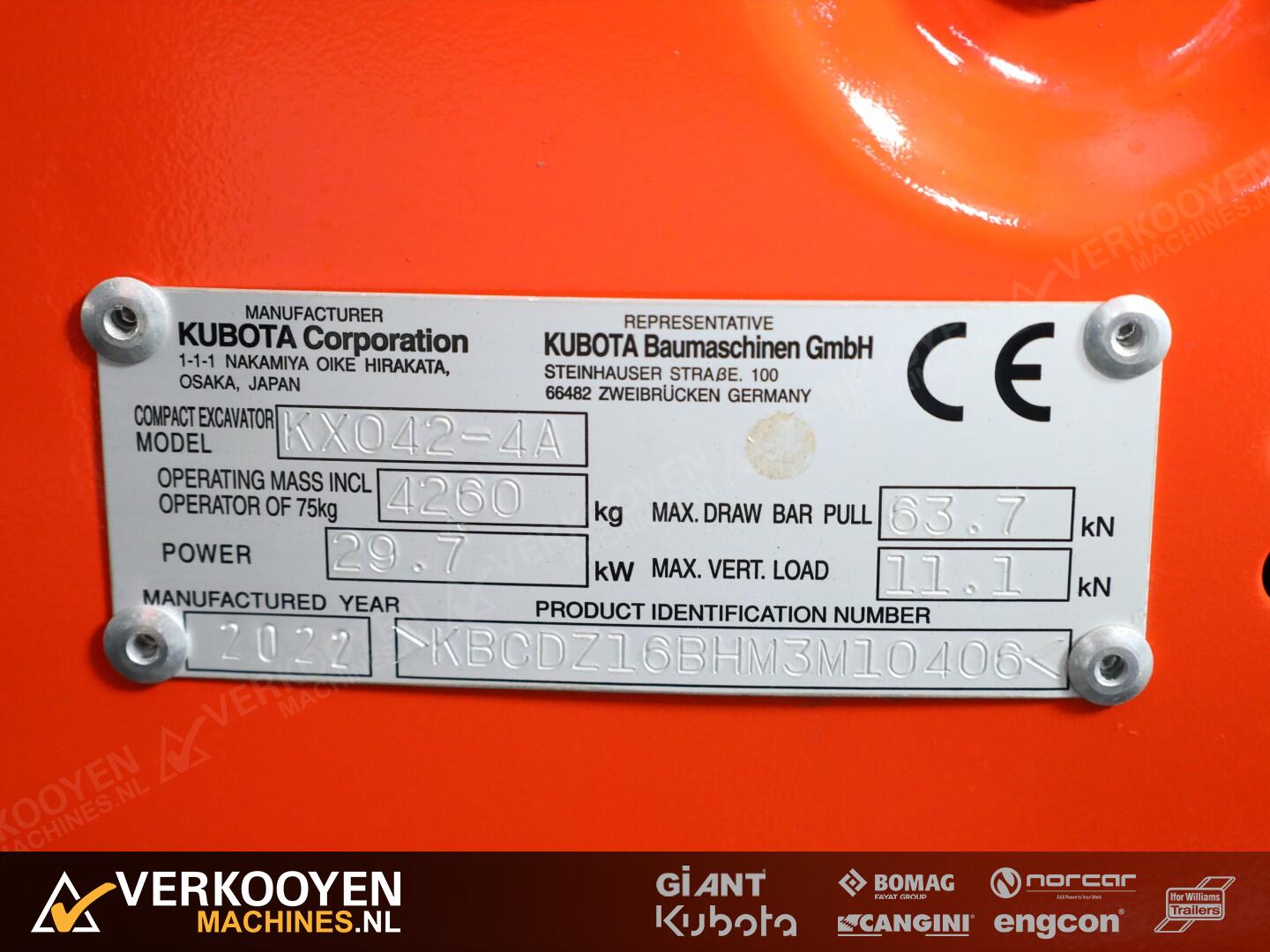 Kubota KX042-4 alpha Minigraver standaard voorzien van