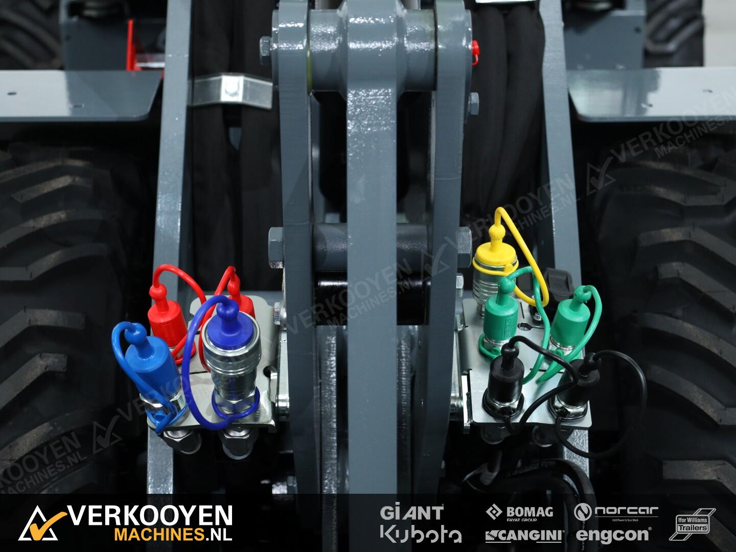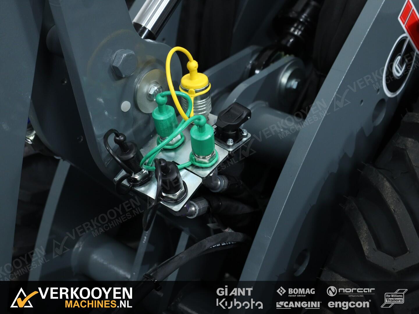 Machine is onder andere voorzien van hefvering, extra inschakelbare pomp 60ltr/min, 3 extra dubbelwerkende functies, LED verkeersverlichting en pro-inching.